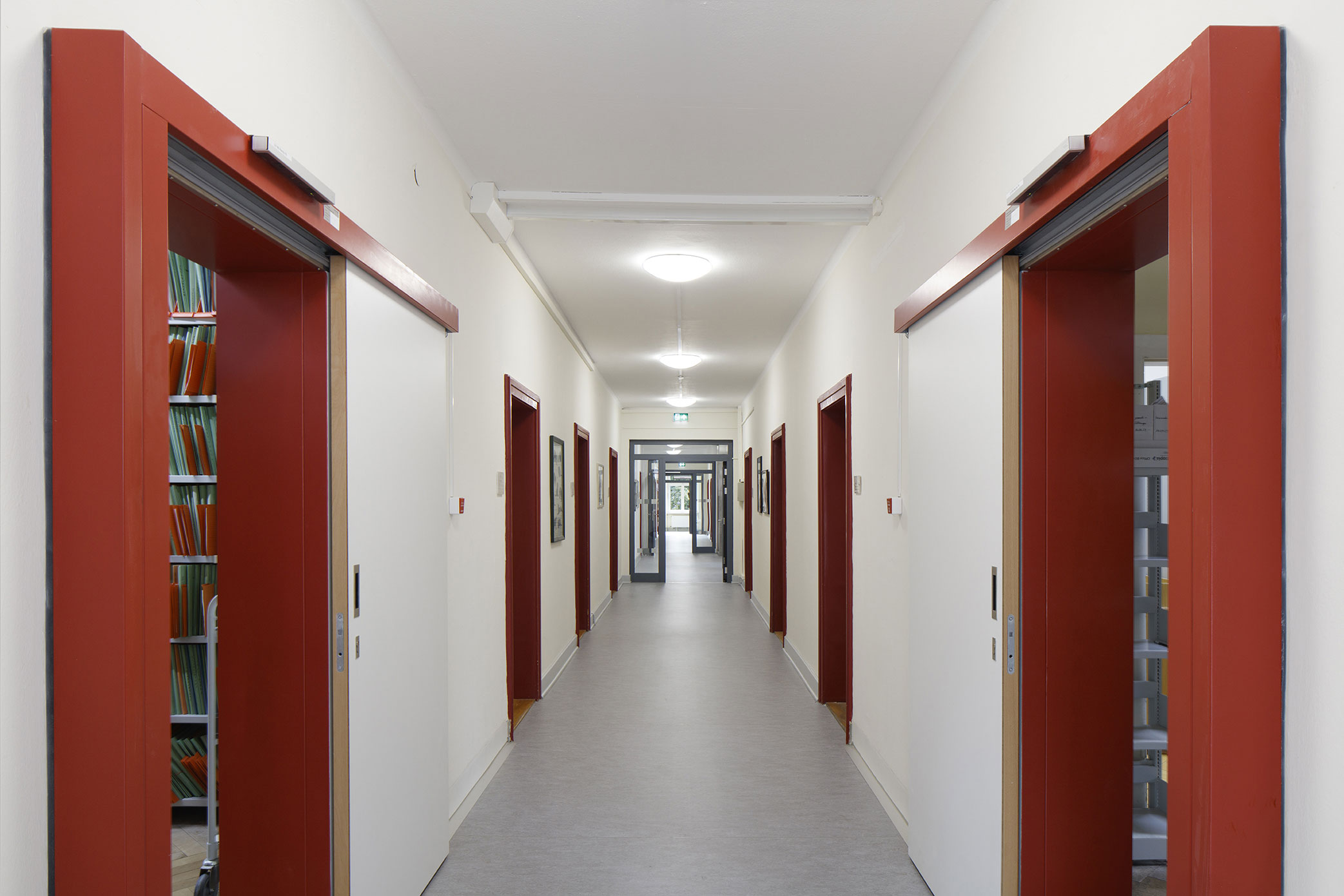 Im Zuge der brandschutztechnischen Ertüchtigung des Finanzamts Burgdorf wurden durch unser Büro die ersten Maßnahmen aus dem vorliegenden Brandschutzgutachten umgesetzt. Der Gebäudekomplex besteht aus vier Baukörpern, von denen zwei in die erste Umsetzungsphase einbezogen wurden. Ziel war es, die bestehenden Strukturen an die aktuellen Anforderungen des vorbeugenden Brandschutzes anzupassen und die Flucht- und Rettungswege zu optimieren.